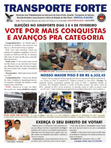Nossos diretores já distribuem nas bases o mais recente jornal “Transporte Forte”. O informativo do Sindicato registra conquistas históricas no transporte de valores e na escolta armada, chamando também para as eleições sindicais, que ocorrerão dias 3 e 4 de fevereiro.