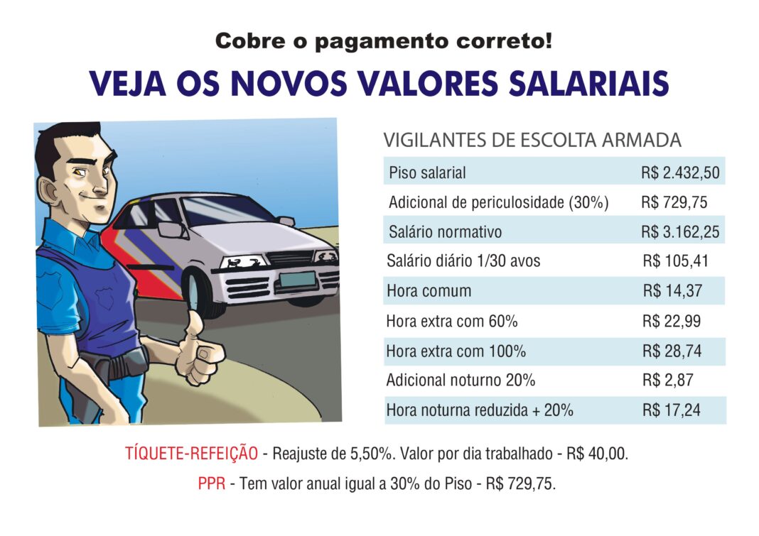 A soma do Piso Salarial na escolta armada com os 30% do Adicional de Periculosidade eleva o Normativo do setor para R$ 3.162,25. A partir de 1º de janeiro de 2025.